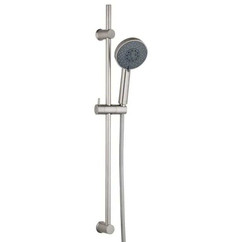 ADORA Dominus 115 brusestang- sæt 5 spray, 800x19mm, steel Brusestangsæt, håndbruser Ø115 mm med Easy Clean gummi siAntikalk funktion. 5-spray: Rain, Massage, RainMassage, Bubbling, StopDrop. 1,5 m silver-look bruseslange med anti-twist forskrunin