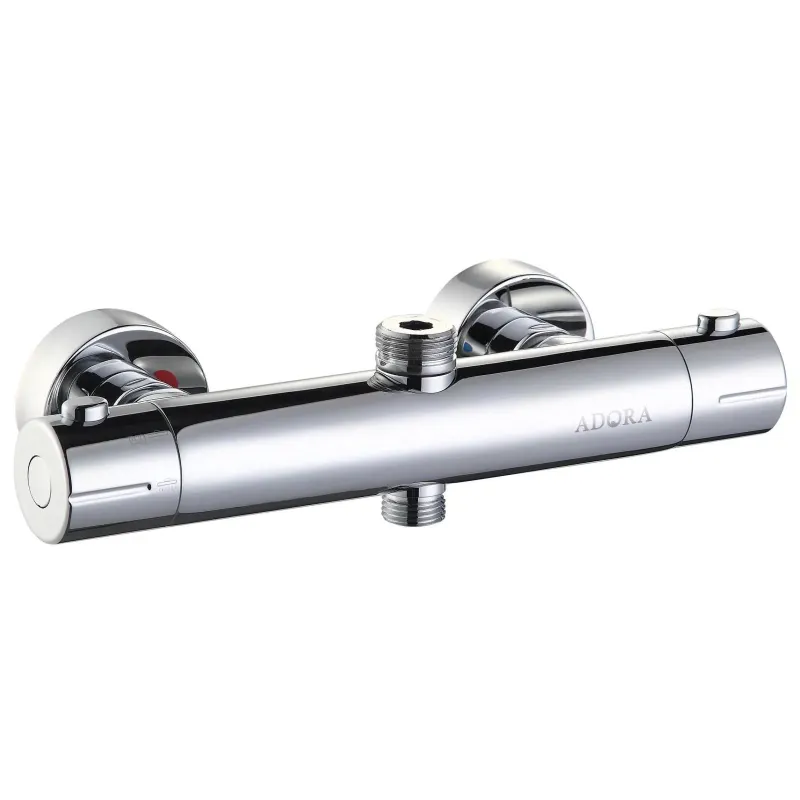 ADORA EXIGO 2 TERMOSTAT- ARMATUR STUDS OPNED, KROM Smuk termostatarmatur til bruseren Termostatarmaturet fra Adora har et simpelt design der ser godt ud på badeværelset. Drypfri og skoldningssikring Blandingsbatteriet har både skoldningssikring og ECO
