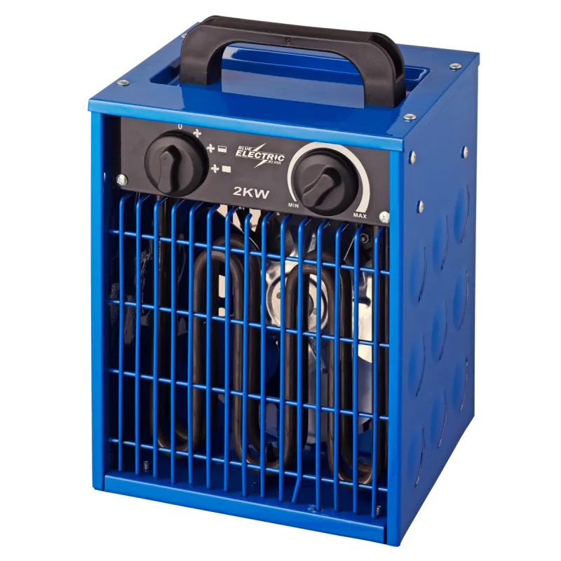 Blue Electric 2kW Varmeblæser Blue Electric varmeblæserne er alle produceret efter de højeste kvalitetskrav. Metalhuset sikrer høj holdbarhed, og de forskellige indstilingsmuligheder sikrer at varmeblæseren kan justeres til det enkelte behov.