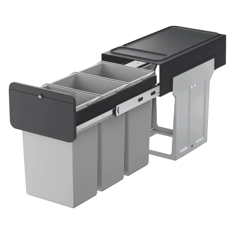 Med dette system får du en praktisk og elegant løsning til affaldshåndtering, der passer ind i ethvert køkkenmiljø. Det er designet til at optimere pladsen og gøre det lettere at sortere affald korrekt.