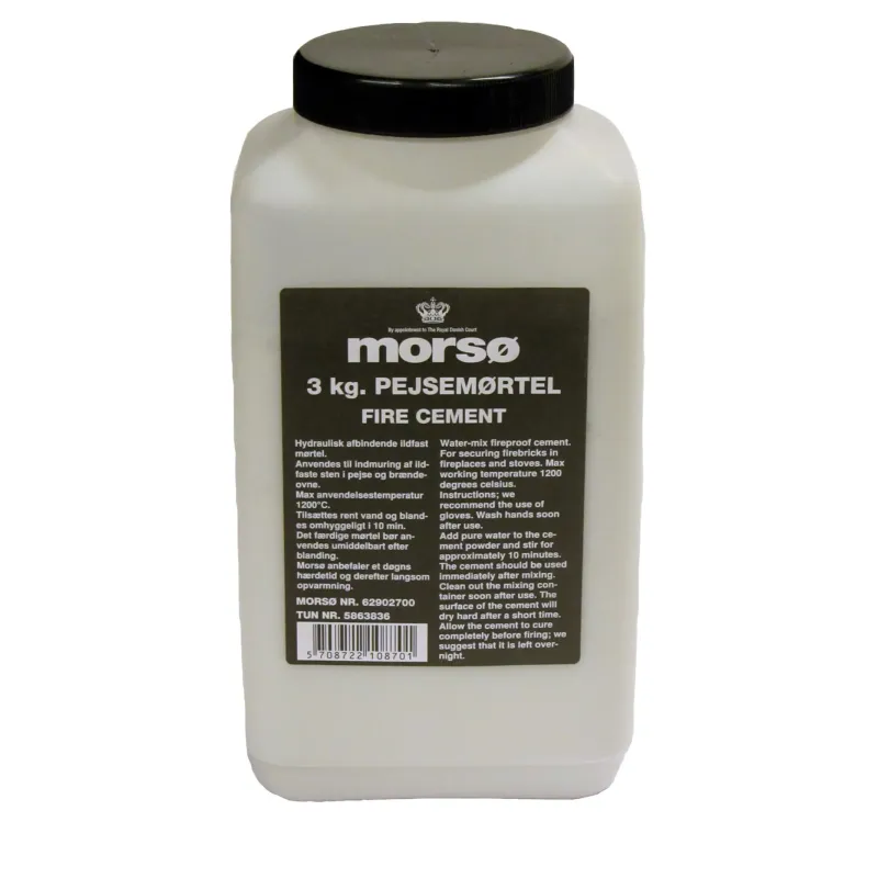 MORSØ PEJSEMØRTEL Pejse mørtel 3 kg. Anvendes til indmuring af sten i åbne pejse og i gamle brændeovne.